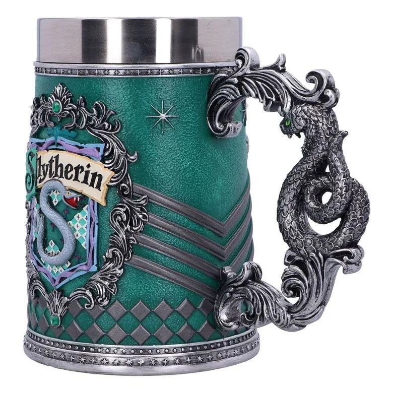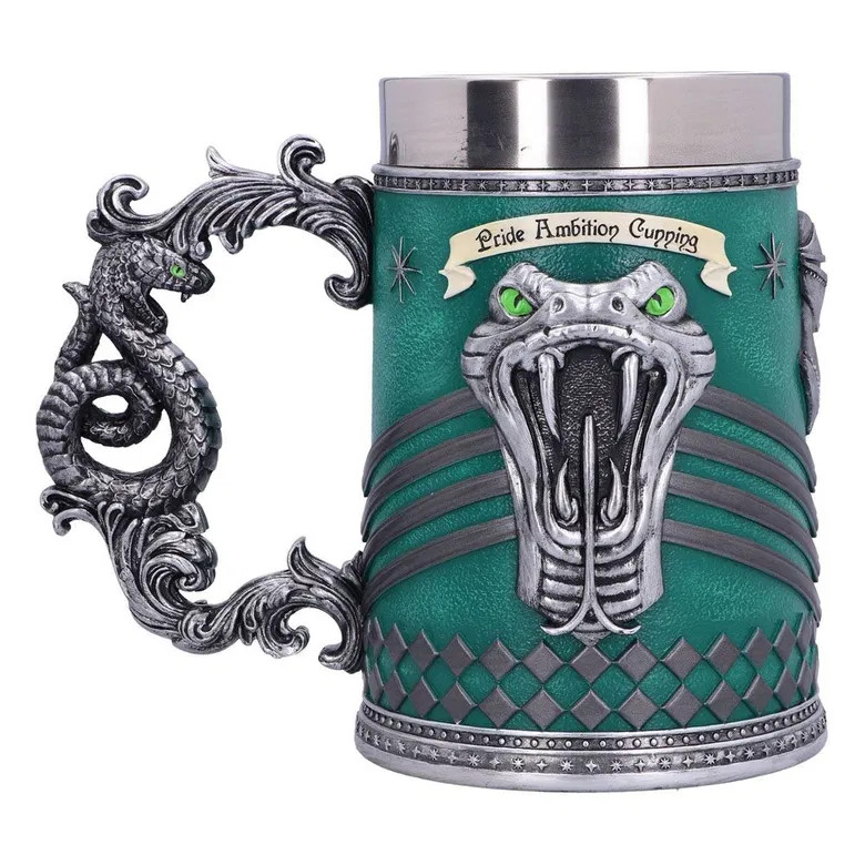 Hadí patron Zmijozelu cení jedovaté zuby z jedinečného zeleného korbelu pro čarodějky a mágy této kouzelnické koleje. Pokud má Zmijozel vaše sympatie, pak nezbývá, než mu připít korbelem určeným pro věrné fanoušky Harry Pottera!