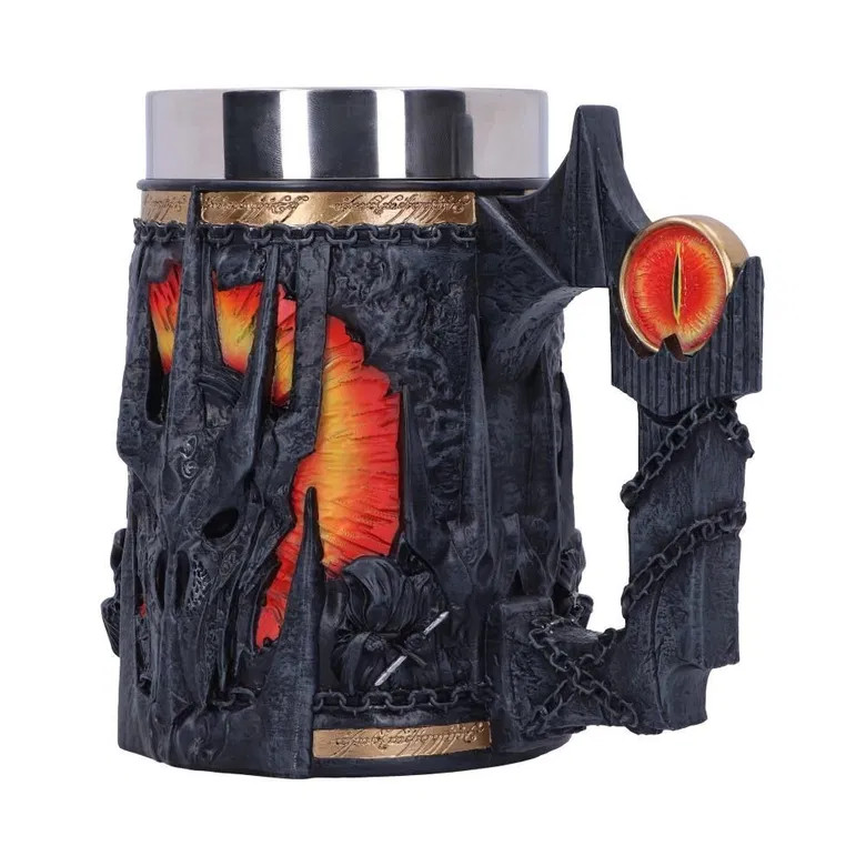 Sauronův korbel se spoustou pěkných detailů bude jedinečným dárkem pro fanoušky fantasy ságy Pán prstenů! Korbel zdobí maska Temného pána z Mordoru, doprovázená dvojicí Nazgûlů - Prstenových přízraků. Horní část lemuje zlatý proužek s nápisem z Prstenu: Jeden prsten vládne všem...