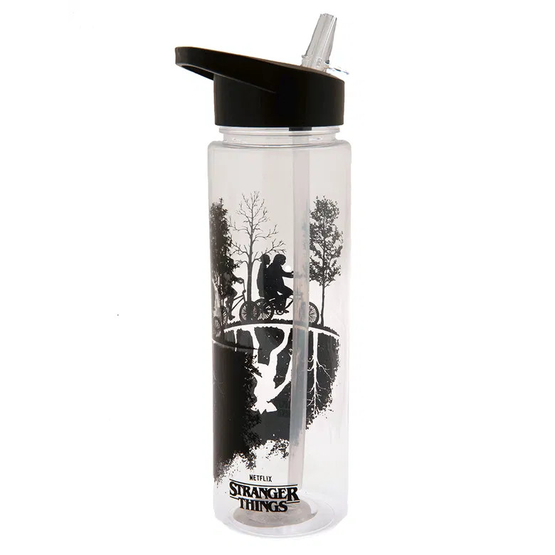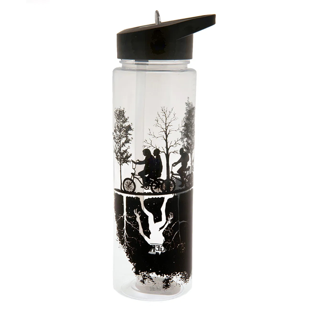 Průhledná plastová láhev na vodu s grafikou populárního seriálu Stranger Things vás nenechá žíznit, ať už budete ve škole, v práci, na výletě nebo Upside Down!
