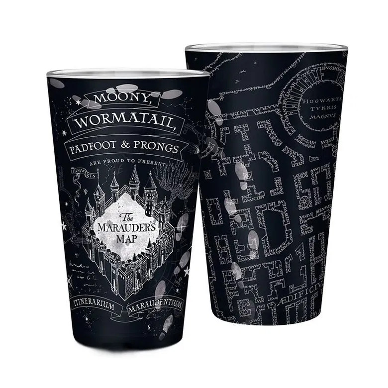 Slavnostně přísahejte a poté se s chutí něčeho dobrého napijte z této krásné sklenice, kterou zdobí Pobertův plánek (The Marauder s Map) z knih a filmů o Harry Potterovi z Bradavic!