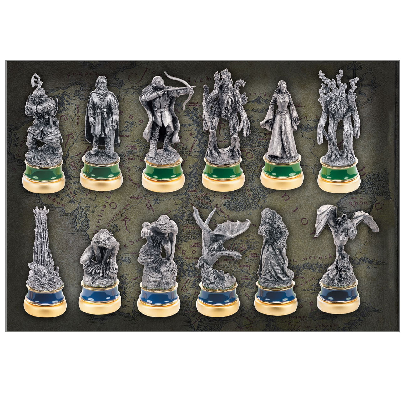 Zkompletujte si svou sbírku s těmito sběratelskými šachovými kousky inspirovanými filmem Pán prstenů - Dvě věže. Čeká na vás balení 12 miniaturních figur (dva sety po šesti) zobrazujících jedinečné postavy z druhého dílu filmové trilogie Pán prstenů. Jednotlivé figurky jsou svým průměrem základny uzpůsobeny pro standardní šachovnici. V sadě naleznete tyto postavy: Gimli Théoden Stromovous (dvě figury v různých provedeních) Legolas Eowyn čarodějnický král Angmaru - vůdce Nazgûlů (dvě figury v různých provedeních) Glum / Sméagol (dvě figury v různých provedeních) Gríma Červivec Věž Barad-dûr