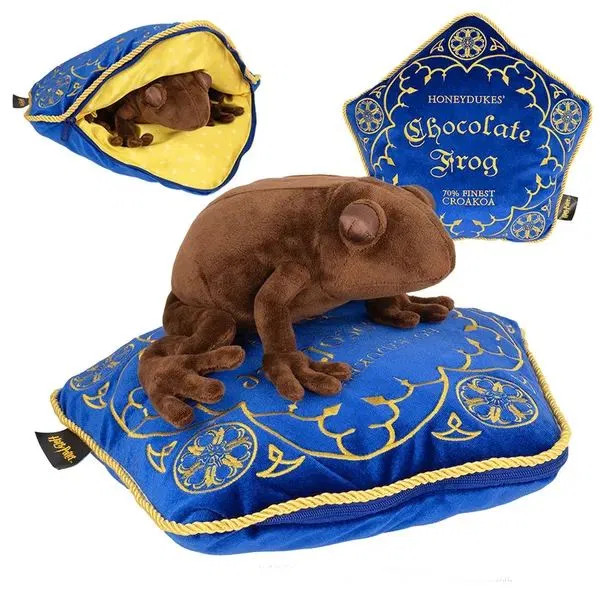 Plyšák v podobě čokoládové žabky z příběhů o Harry Potterovi a polštář ve tvaru pentagonové krabičky této magické sladkosti budou skvělým dárkem i doplňkem domácnosti každého fanouška čarodějného světa J. K. Rowlingové.