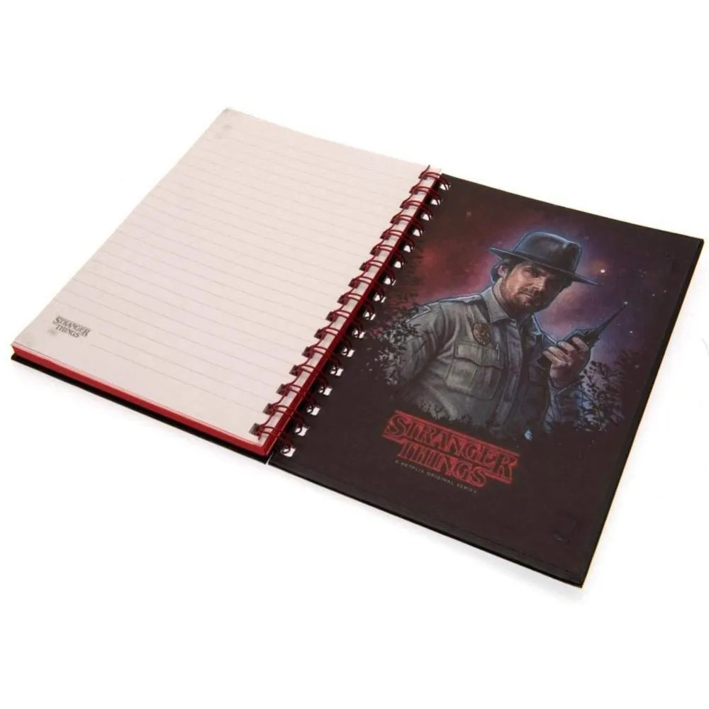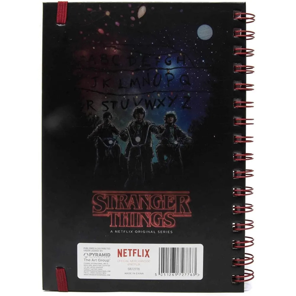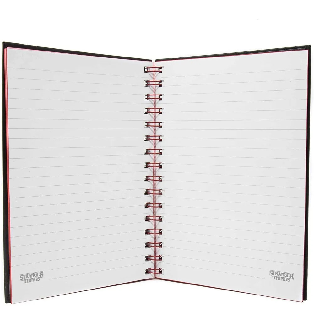 Pěkný zápisník v kroužkové vazbě s grafikou hororového seriálu Stranger Things má 200 linkovaných stran a zavírá se pomocí elastické stužky.